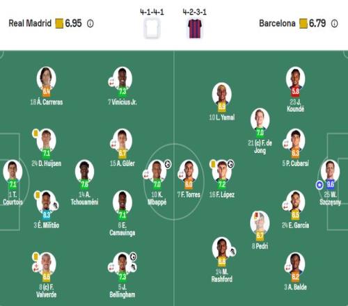 从以上数据可以看出,全场得分最高的球员不是皇马的10号姆巴佩,而是巴萨的25号什琴斯尼,获评9.3分。值得一提的是,西甲官方将全场最佳球员,颁给了姆巴佩。