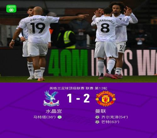 曼联21逆转水晶宫,齐尔克泽凌空斩破荒,B费两助攻